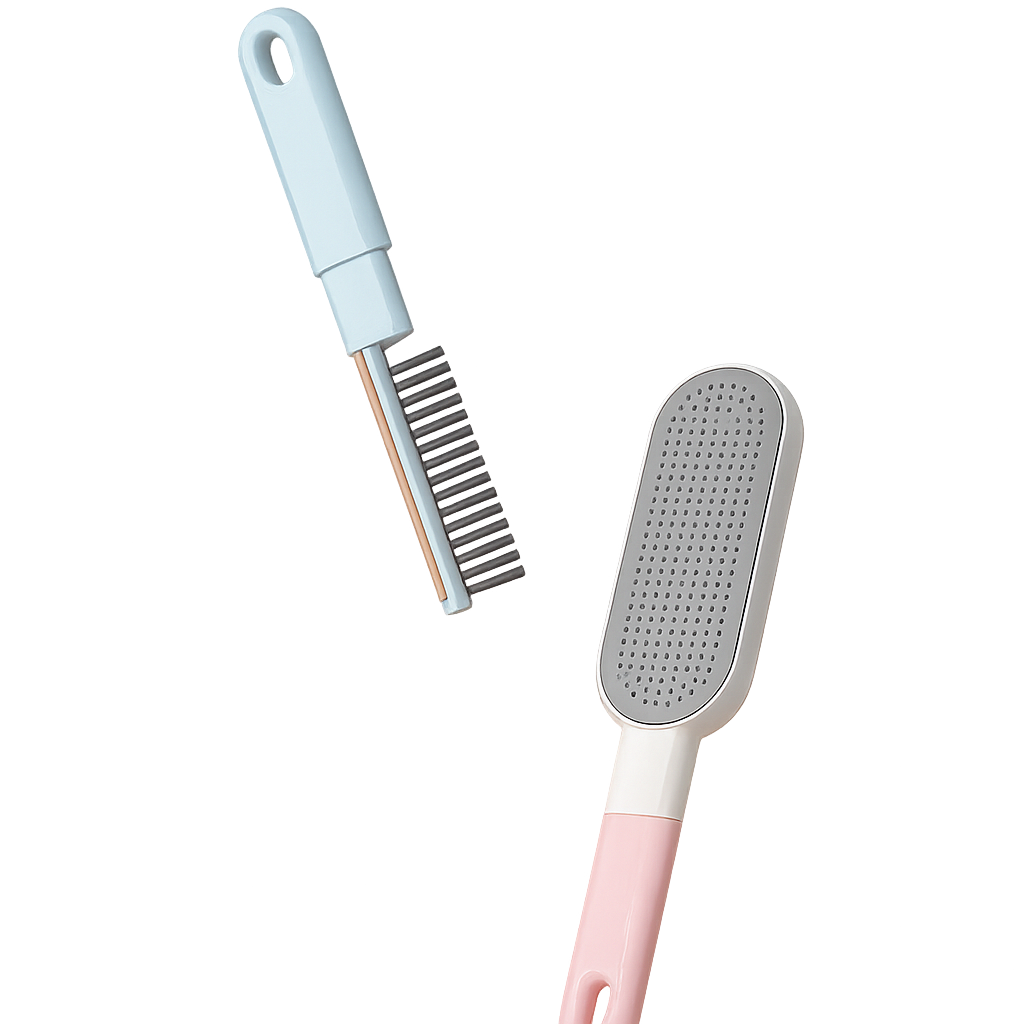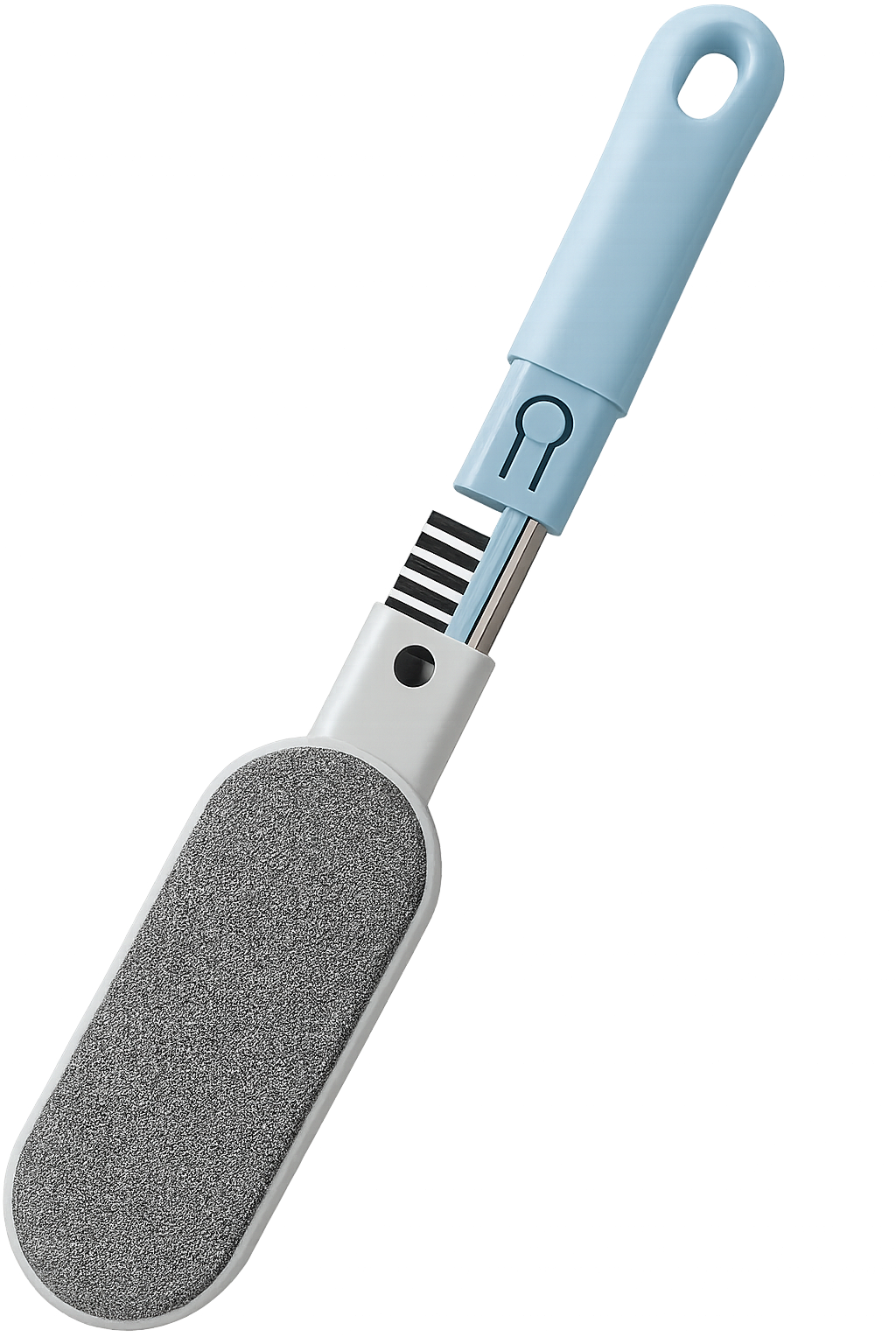 Die doppelseitige Bürste vereint Funktion und Präzision. Eine Seite mit weichem Spezialstoff sammelt selbst feine Tierhaare von Stoffen und Polstern, während die Gummiseite mit Noppen Staub und Fusseln effektiv löst. Wird der Kopf abgezogen, kommen eine zusätzliche Bürste und ein feiner Staubschaber zum Vorschein – ideal für schwer erreichbare Stellen. Ein Werkzeug, das jedes Detail perfektioniert.